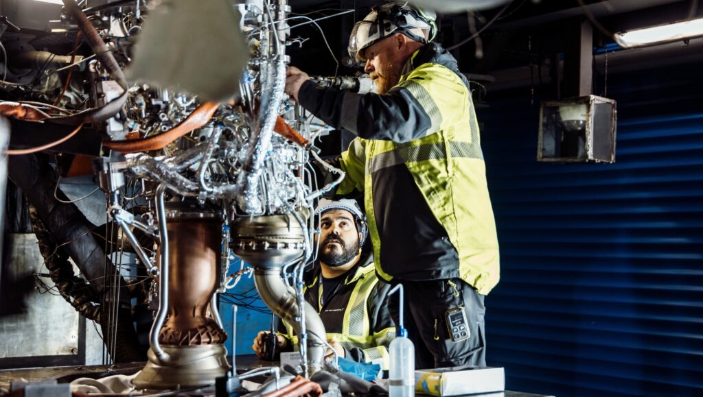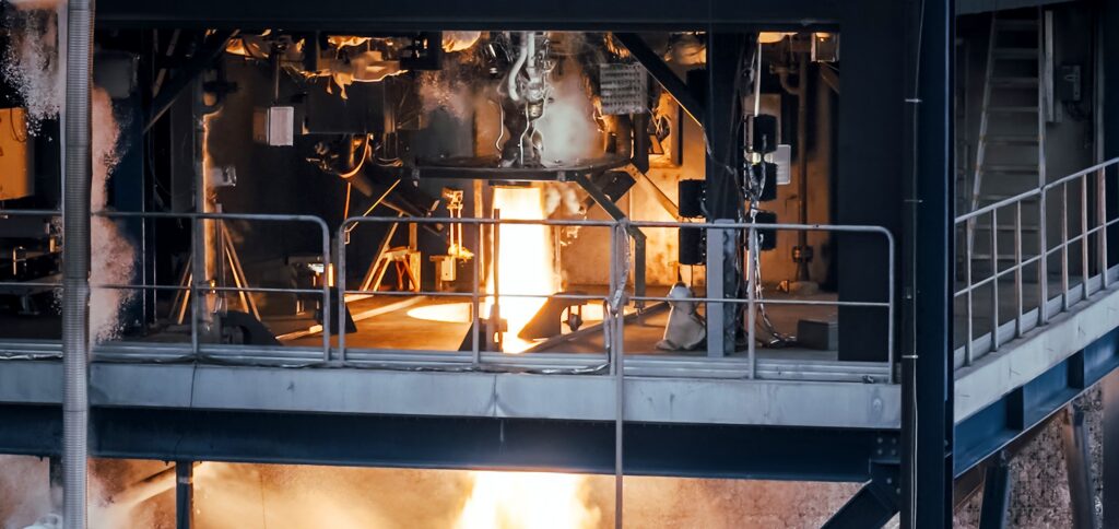 Un propulsore Aquila viene preparato per un test di accensione. Credit: Isar Aerospace