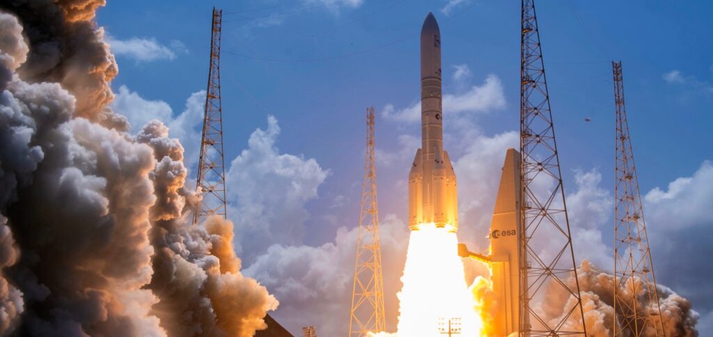 Il vettore Ariane 6, al sesto volo dopo l’entrata in servizio nel luglio 2024 e decollato per la prima volta nella versione con quattro booster laterali, è diventato il più potente lanciatore europeo mai lanciato.